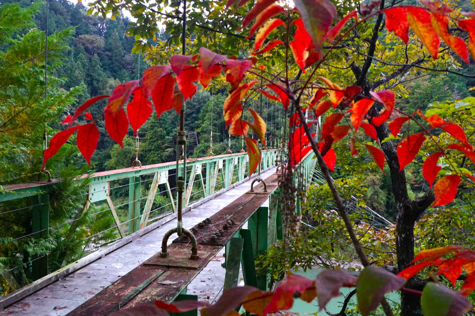 橋とウルシの紅葉