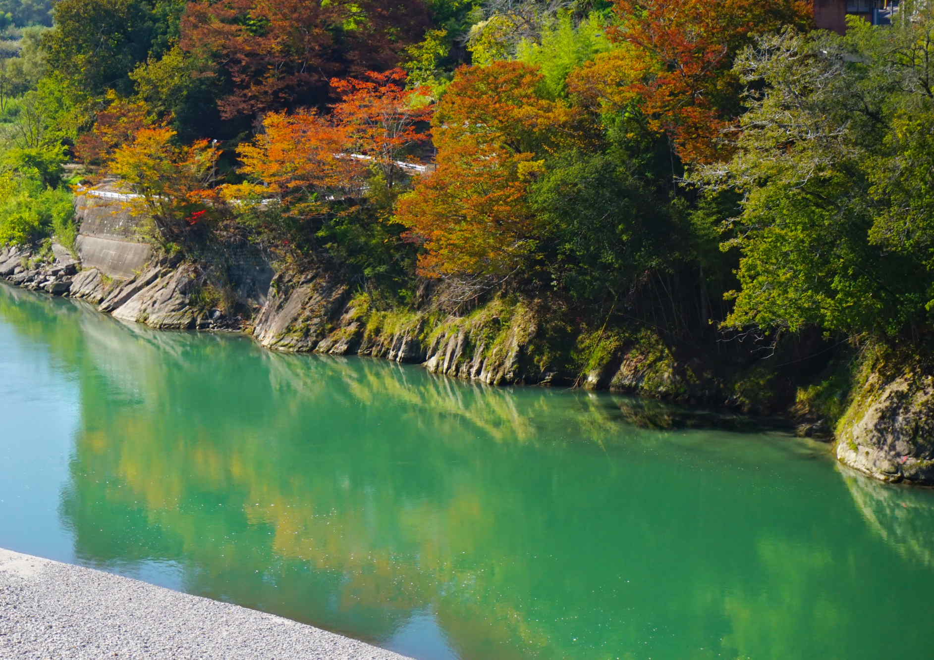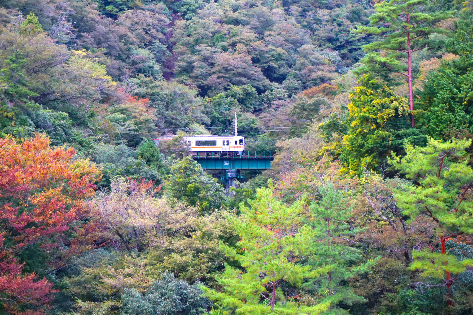 「駅に向かう橋、その袂の鮮やかな紅葉」...文字面からは多くの人が目にする光景を